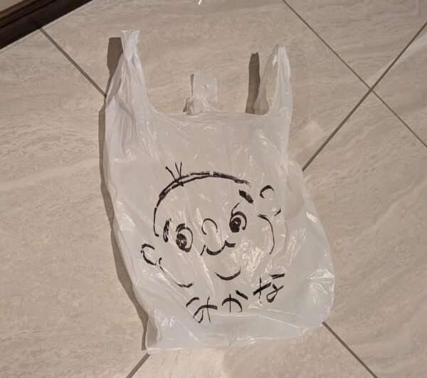 私も、保育園の連絡帳や汚物入れ用のビニール袋に落書きをするのが、